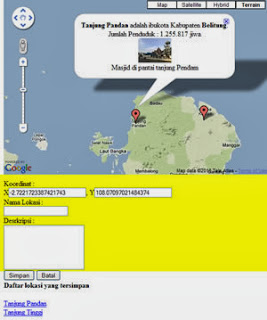 Di artikel ini kita akan melihat bagaimana menampilkan google map di website kita, bagaimana menandai suatu lokasi, memberi nama, deskripsi kemudian menyimpannya ke dalam database. Dan bagaimana menampilkan kembali lokasi yang kita tandai tersebut ke google map sekaligus menampilkan deskripsinya.